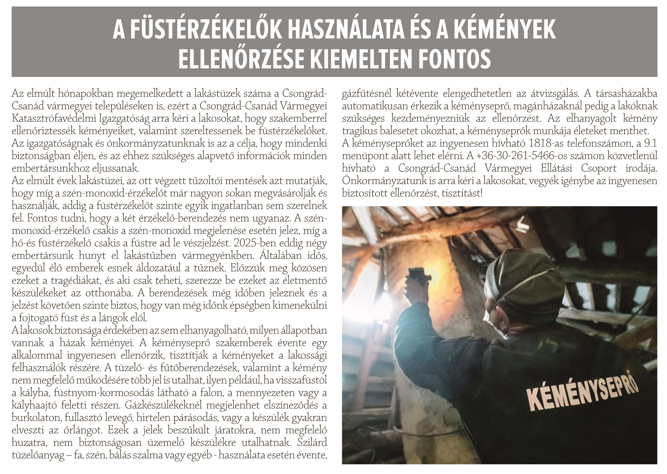 Mutasd mindet! A füstérzékelők használata és a kémények ellenőrzése kiemelten fontos Kapcsolódó2025-12-10Polgármesteri Hivatal ünnepi nyitvatartásatovább...2025-11-27Újévi koncert 2026. január 1. 18:00tovább...2025-11-27Tájékoztatás zöldhulladék-gyűjtő zsákok kiosztásáróltovább...