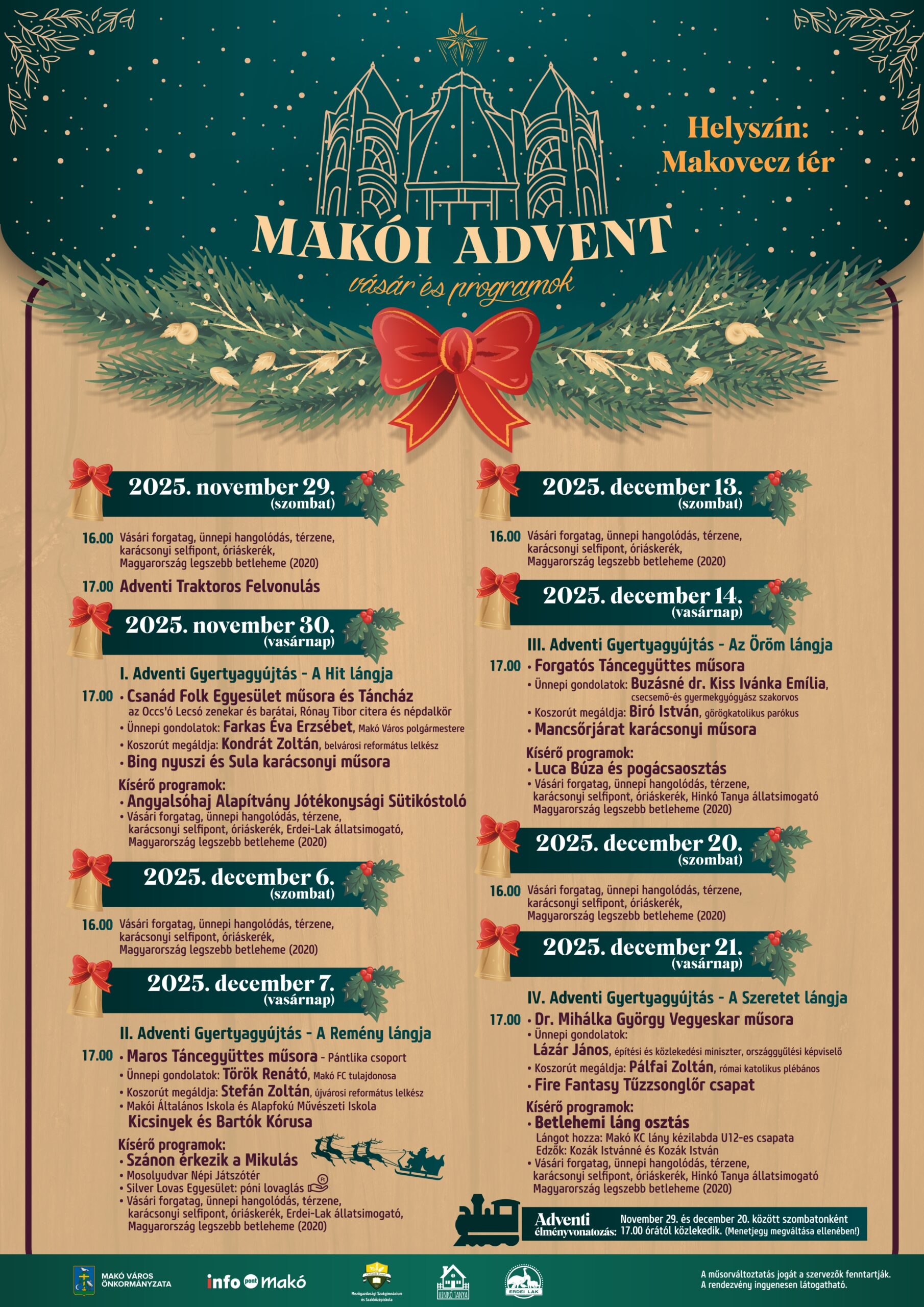 Mutasd mindet! Makói Advent Kapcsolódó2025-11-27Újévi koncert 2026. január 1. 18:00tovább...2025-09-29Rendőrségi toborzástovább...2025-09-26ARADI VÉRTANÚK EMLÉKNAPJAtovább...