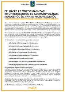 • Felhívás az Önkormányzati kitüntetésekről és adományozásuk rendjéről és annak határidejéről