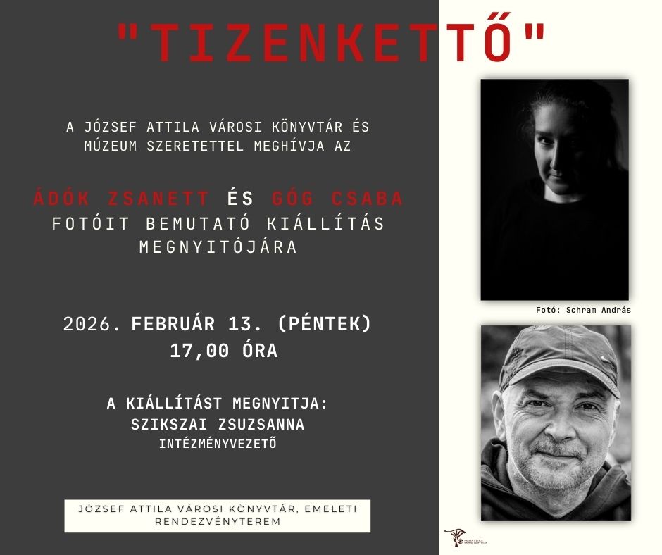 17:00 – 18:00 „TIZENKETTŐ” – Ádók Zsanett és Góg Csaba fotókiállítása február 13. – 17:00 – 18:00 „TIZENKETTŐ” – Ádók Zsanett és Góg Csaba fotókiállítása