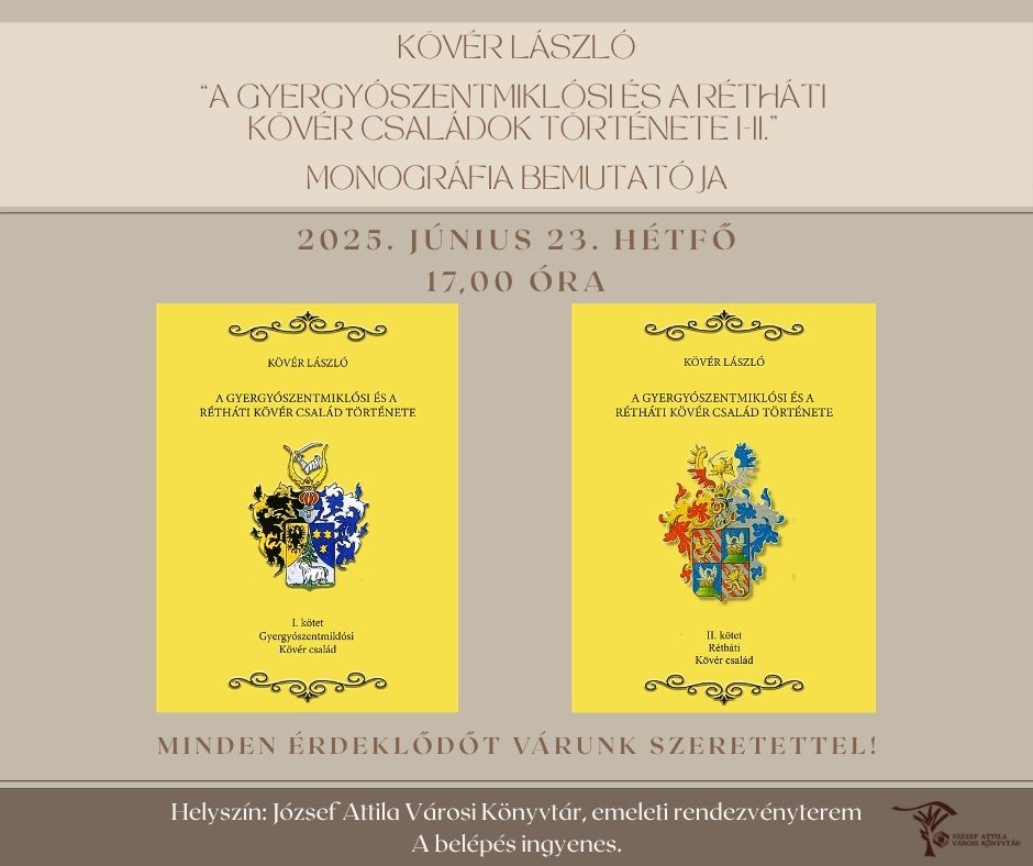 17:00 Kövér László „A gyergyószentmiklósi és a rétháti Kövér családok története I–II.” című monográfiájának bemutatója június 23. – 17:00 Kövér László „A gyergyószentmiklósi és a rétháti Kövér családok története I–II.” című monográfiájának bemutatója