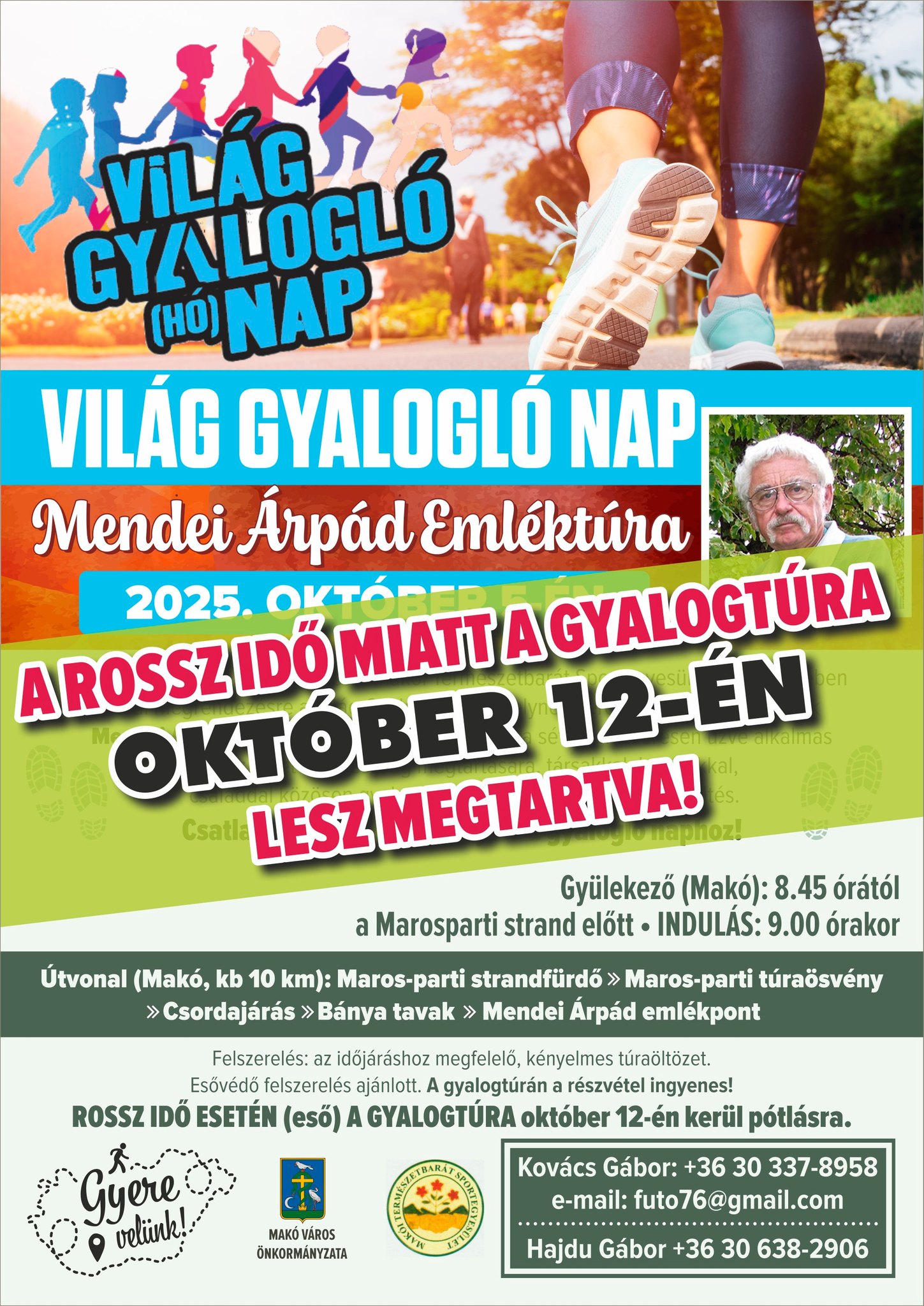 08:45 – 12:00 Világ Gyalogló (Hó)nap – Mendei Árpád Emléktúrára október 12. – 08:45 – 12:00 Világ Gyalogló (Hó)nap – Mendei Árpád Emléktúrára