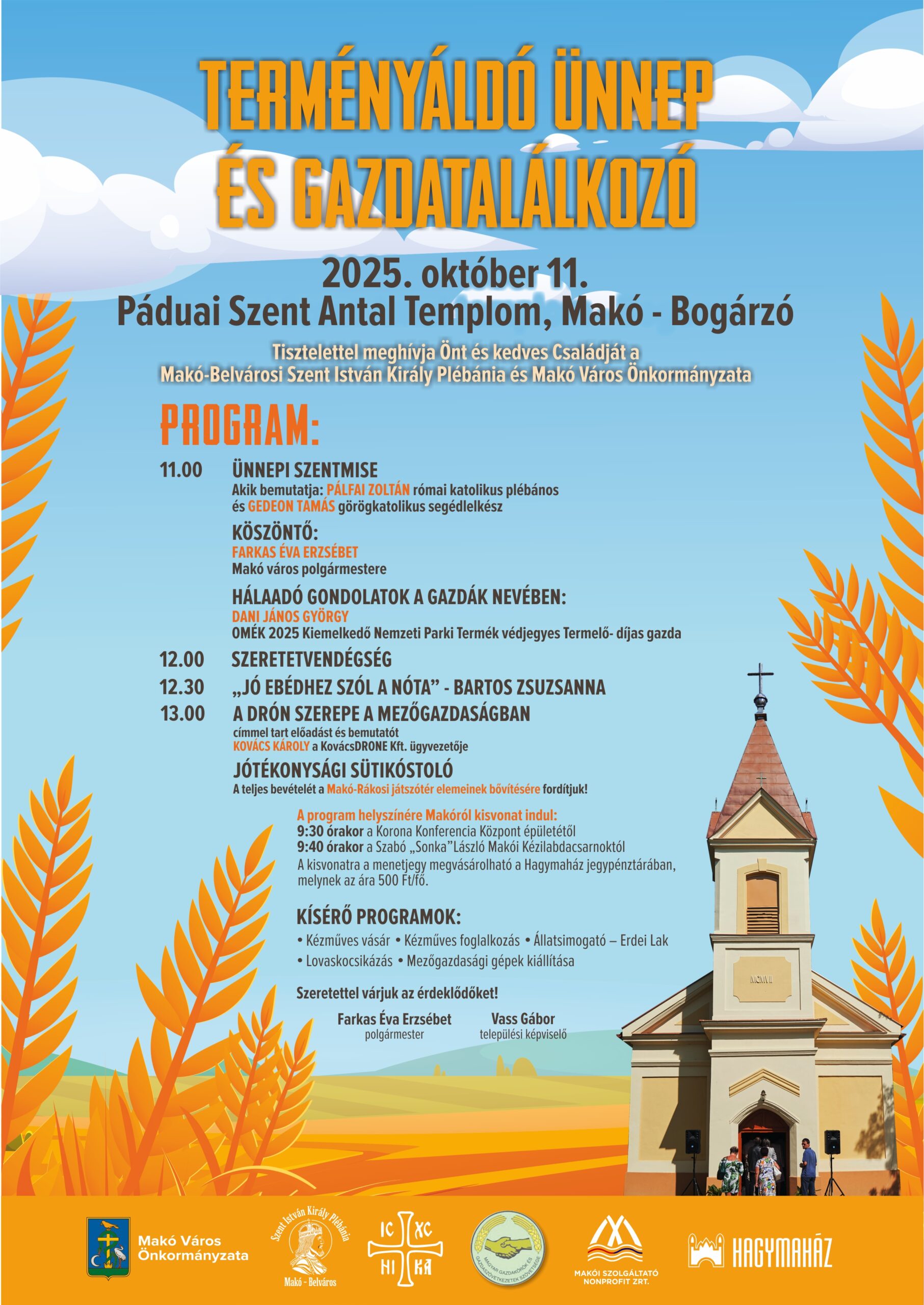 11:00 – 15:00 Terményáldó Ünnep és Gazdatalálkozó október 11. – 11:00 – 15:00 Terményáldó Ünnep és Gazdatalálkozó
